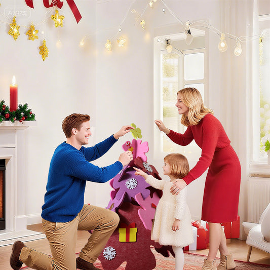 3D Felt Christmas Decoration Kits for Craft - Protable Folding Christmas Tree with 15pcs Small Decorations,Felt Art Kits for Indoor- Style Flower